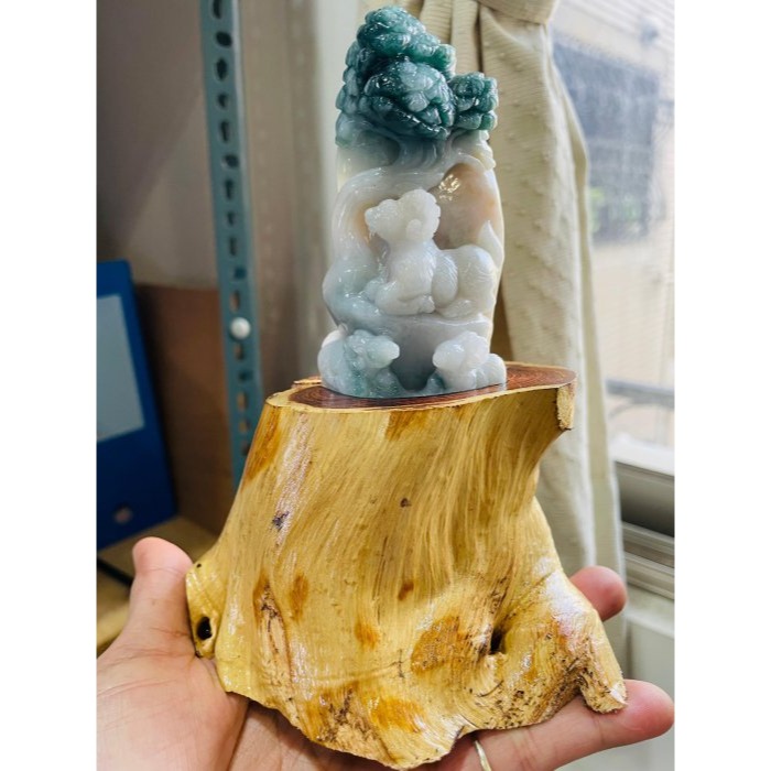 完整度98% 純手工雕作工細立體線條俐落分明 附原木座