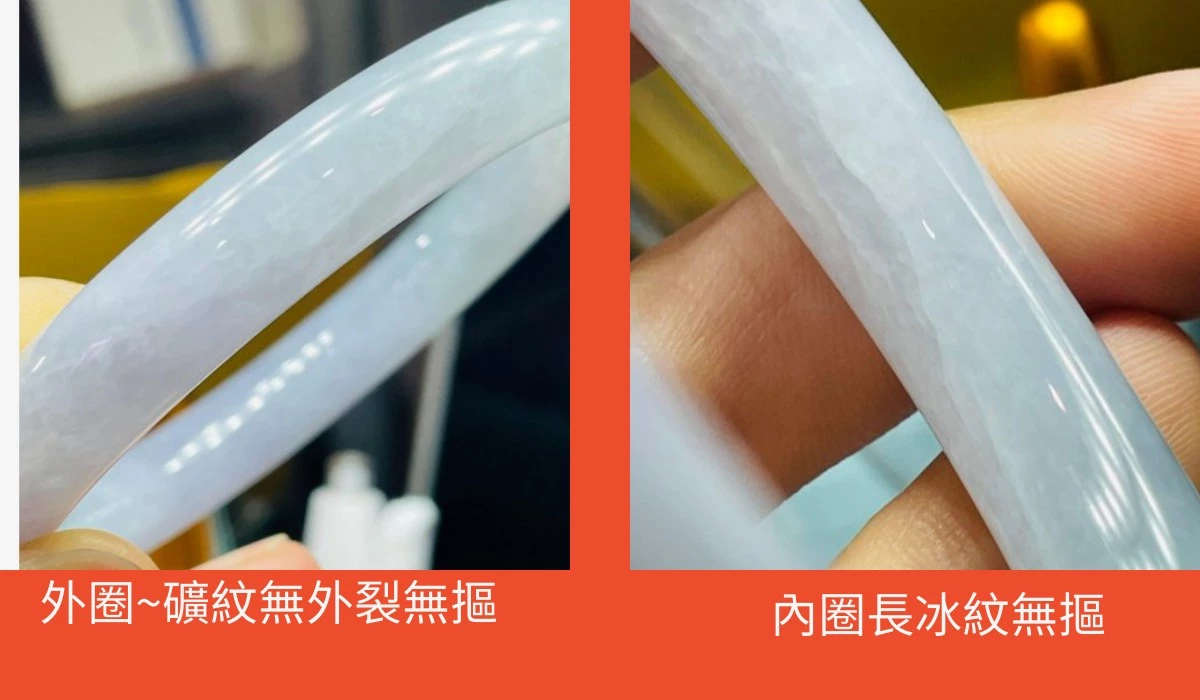 整圈能見紫綠不露白 外圈一條長礦紋 無外裂無摳 內圈有無摳長冰紋 (照片.影片皆有特寫)