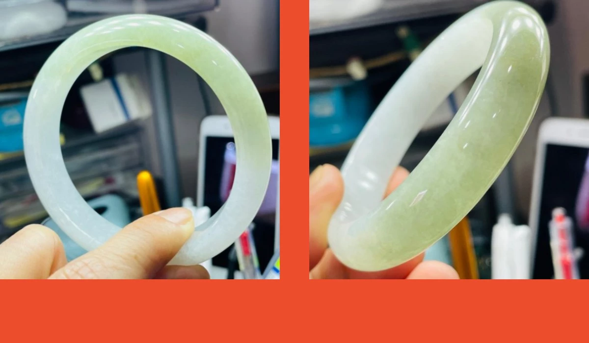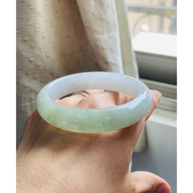 半圈多乾淨晶透白冰 帶秋香色冰油青 整圈冰潤透光 半山水兩色乾淨分明