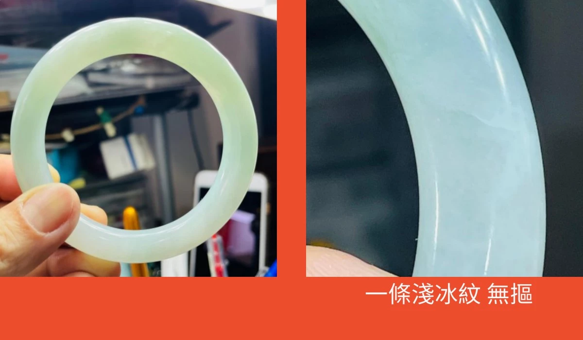 條形適中完美鐲形 帶一條淺冰紋無摳且淺(圖.影片有特寫) 紋裂完美度95% 附台証