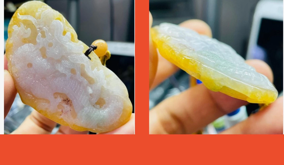 一面天然無燒黃霧層 一面粉春彩肉 微帶紅灑金 皮肉分明純手工滿雕工細線條清晰流暢