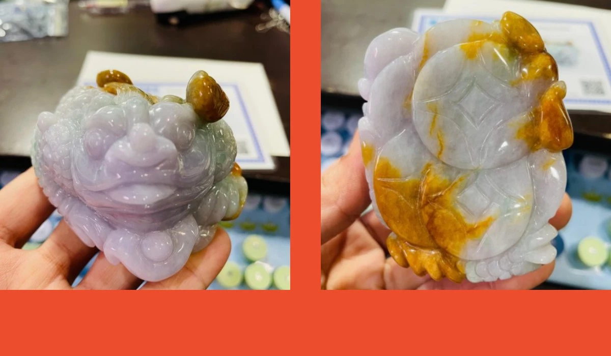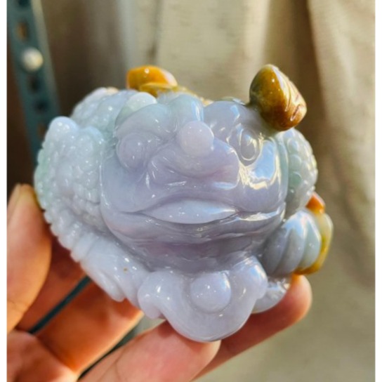 細肉溫潤全透光 濃郁紫綠帶橘黃皮 色滿顯色紫綠能見 皮色濃溫潤無沙坑眼
