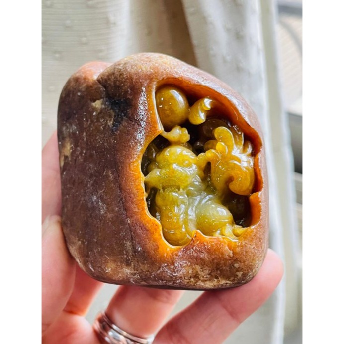 未淘砂皮殼獨籽開窗露出冰冰油黃肉 冰肉黃過度橘紅滿色 無棉無晶體結構無雜點