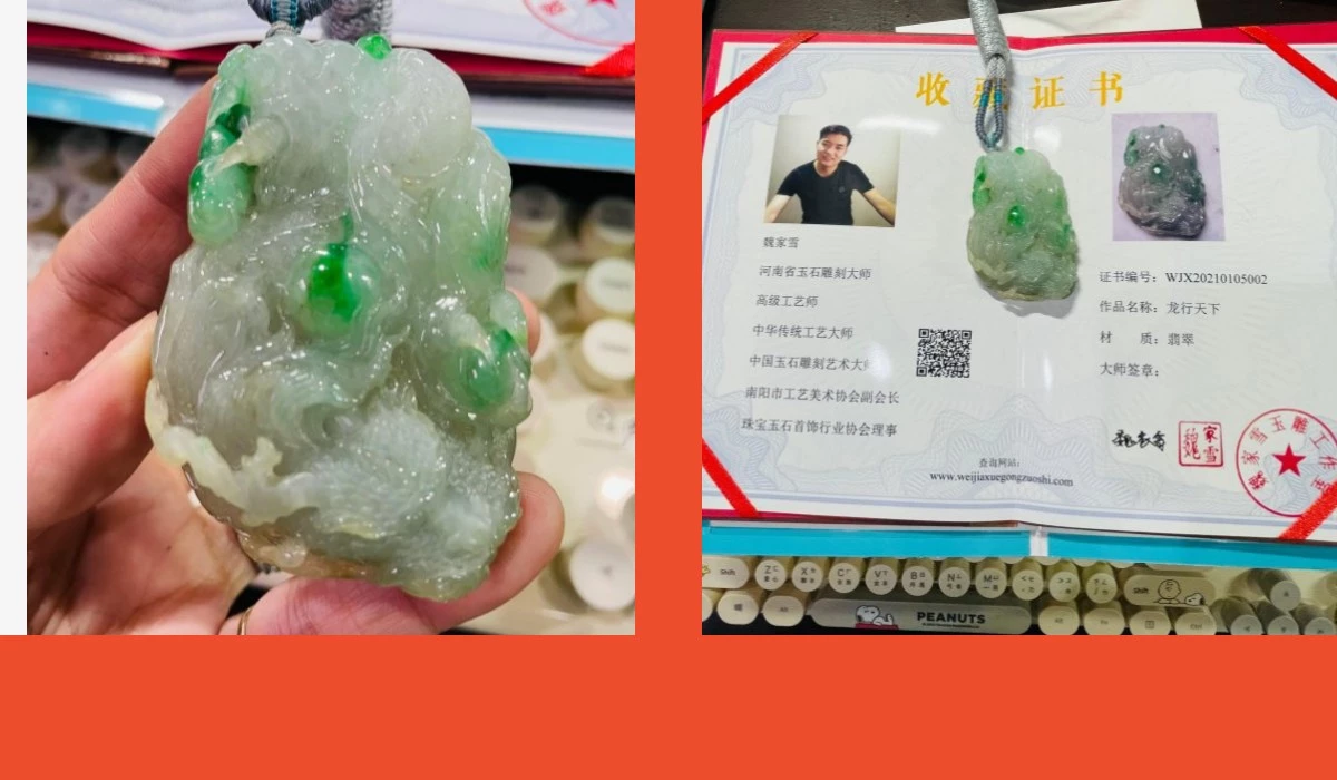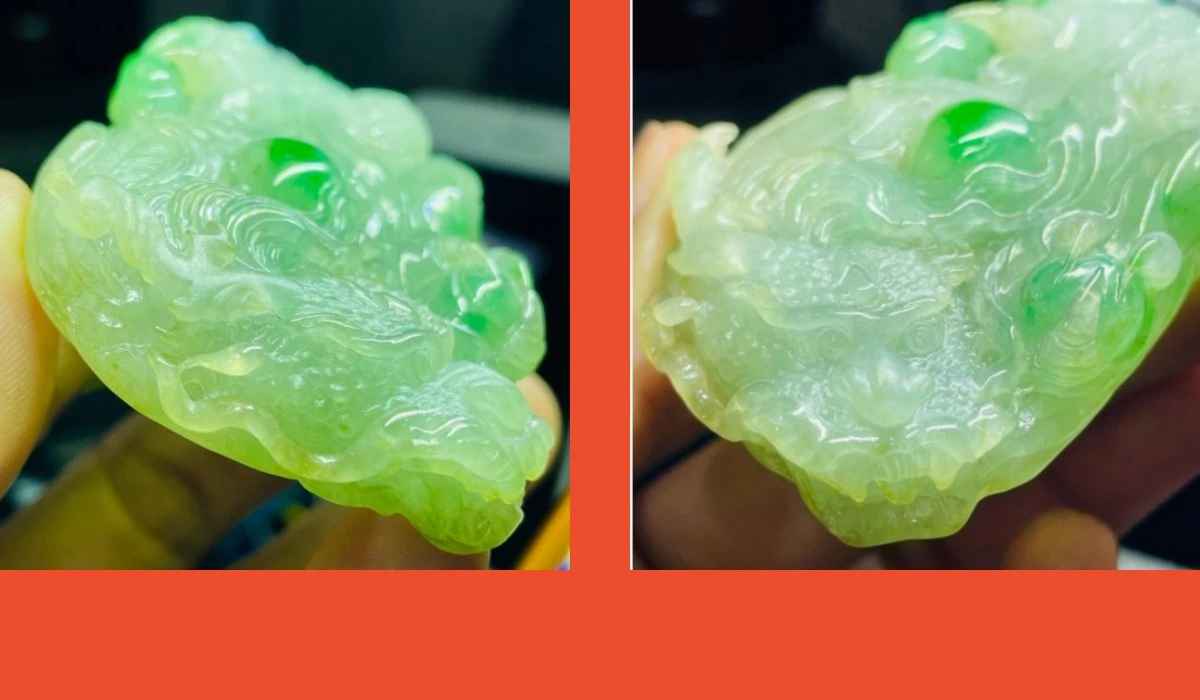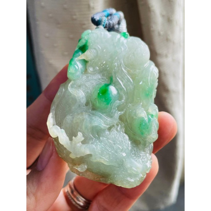 冰冰辣色陽綠 色正色純且帶多 精工俏色巧雕為龍珠.如意.蛋面