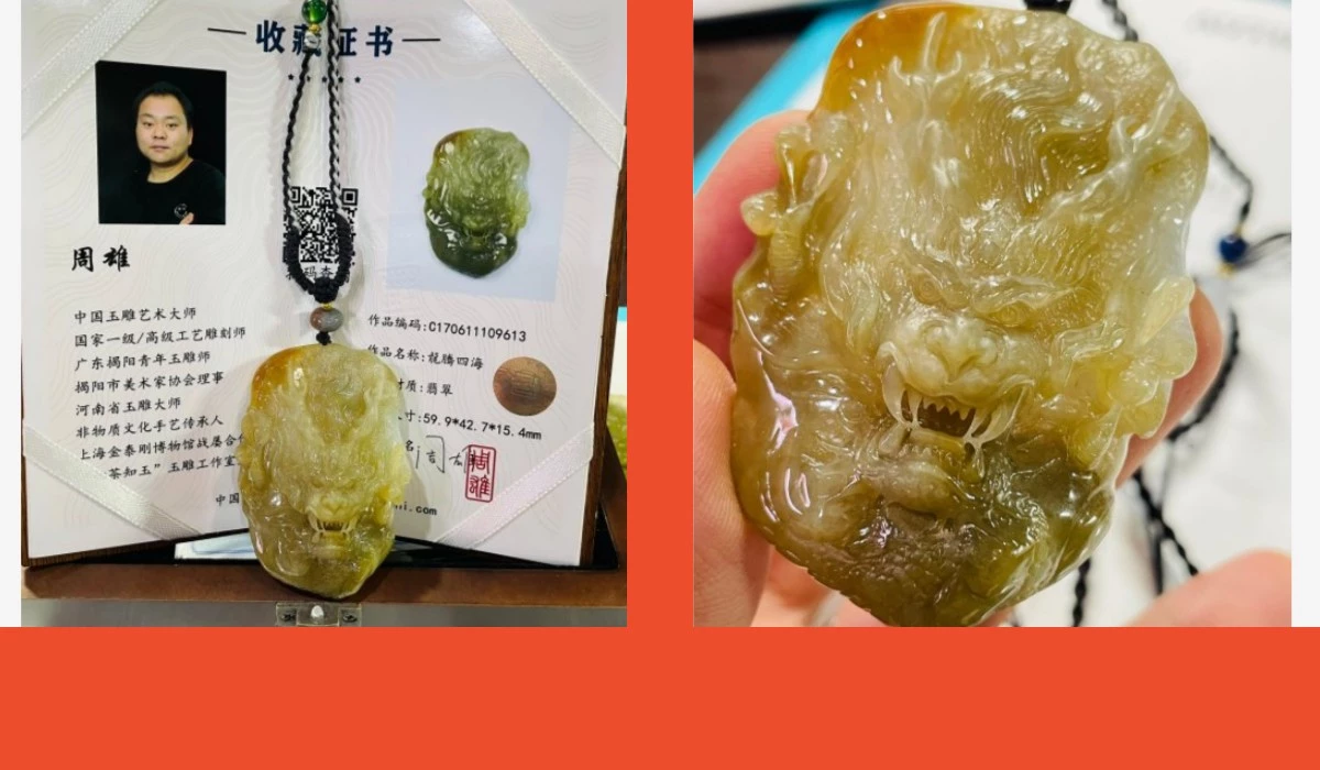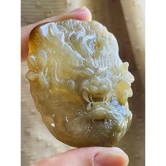 天然過渡無燒色 大師精工龍首霸氣立體 滿口好牙長又尖 龍爪尖銳晶透起光感