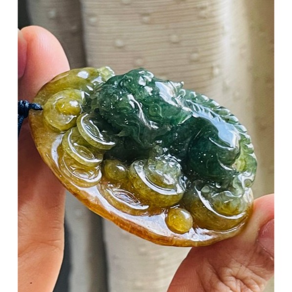 厚厚黃霧為底巧滿滿銅錢.金元寶 冰油綠肉色滿勻稱色澤冰晶俏雕滿色貔貅