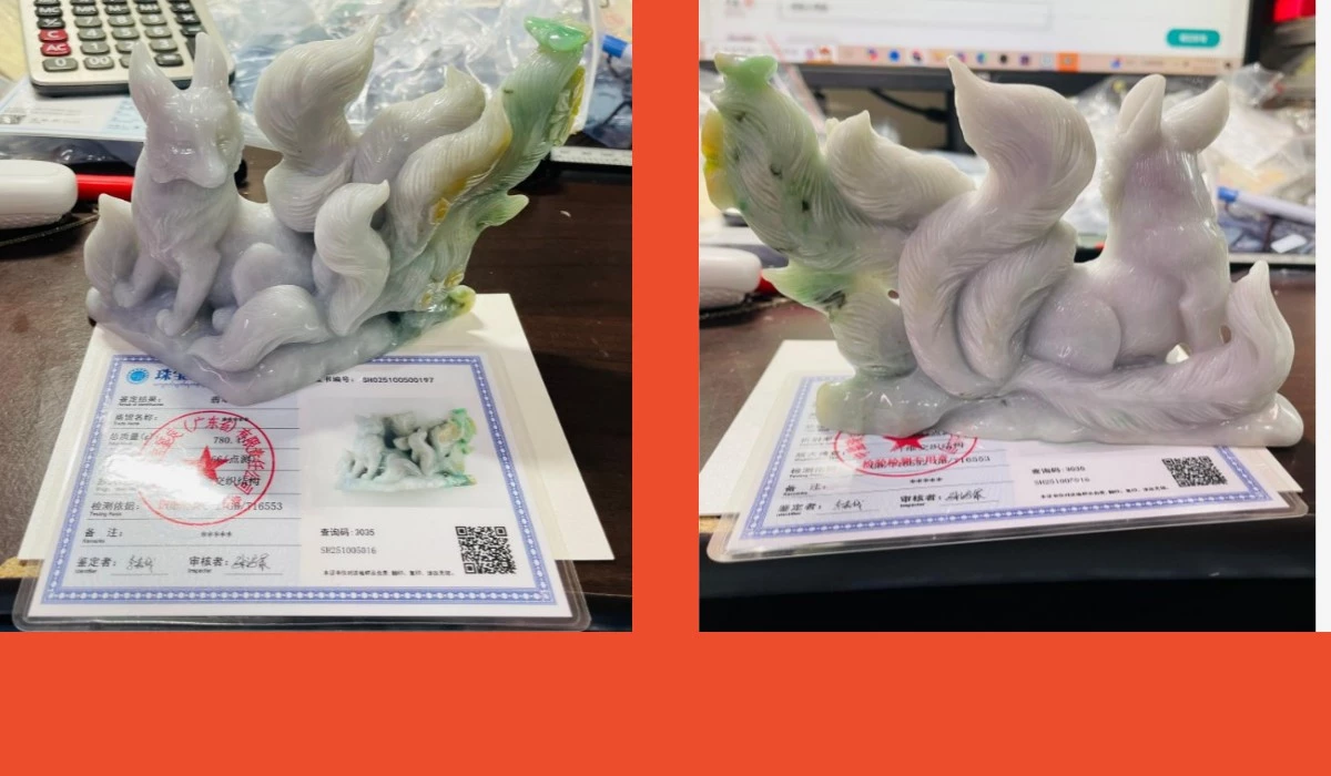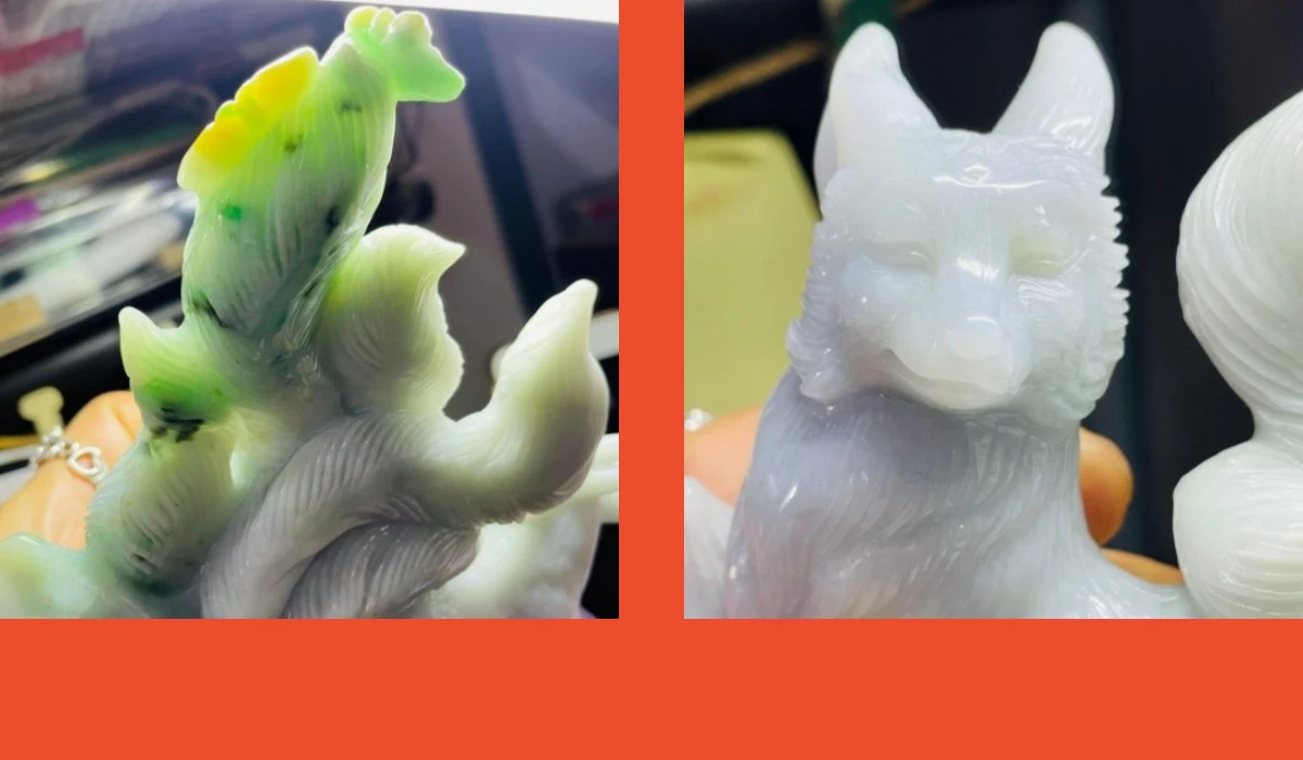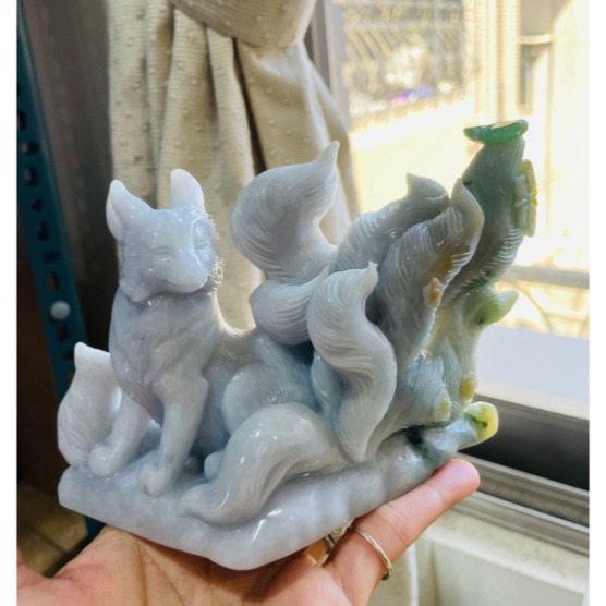 重工費純手工俏色巧雕雕作全立體九尾狐