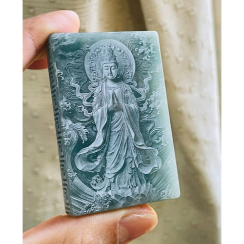 完美方正牌形雙面噴砂影雕 站姿和長觀音法像祥和莊嚴