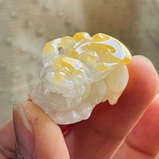 商品狀況: 冰糯種 冰潤金黃雙彩 老種黃翡冰料肉細緊細膩無晶體無沙坑眼起冰