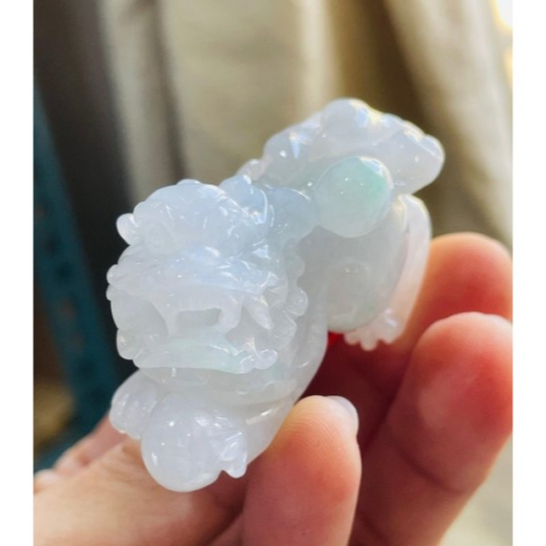 扎實老白冰料 乾淨無雜染純色白冰底色 色純清透 幾抹青綠點翠增彩