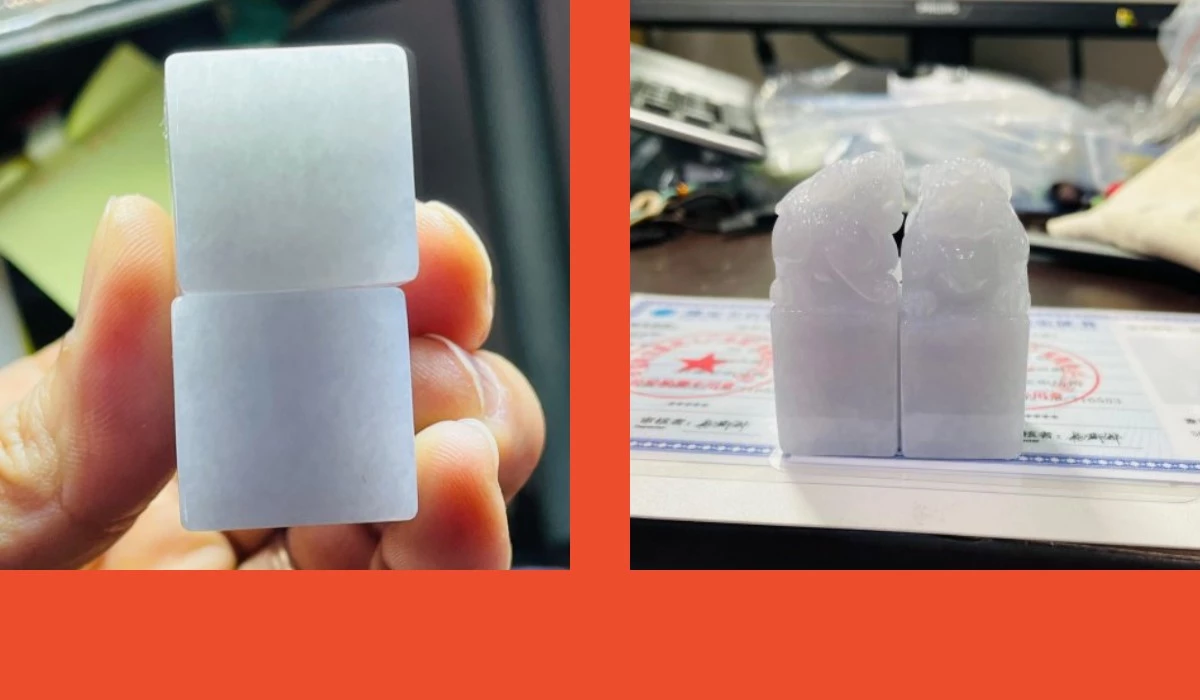 完美光滑帶冰有光澤 方正2.0公分大印體 同料對印一對走