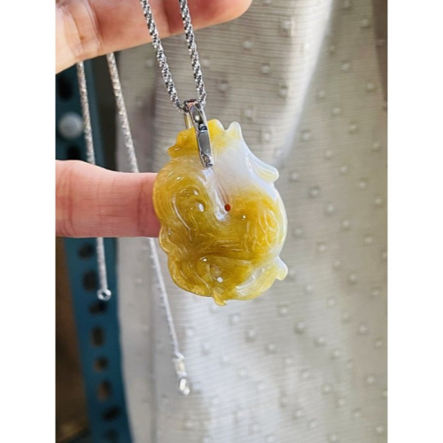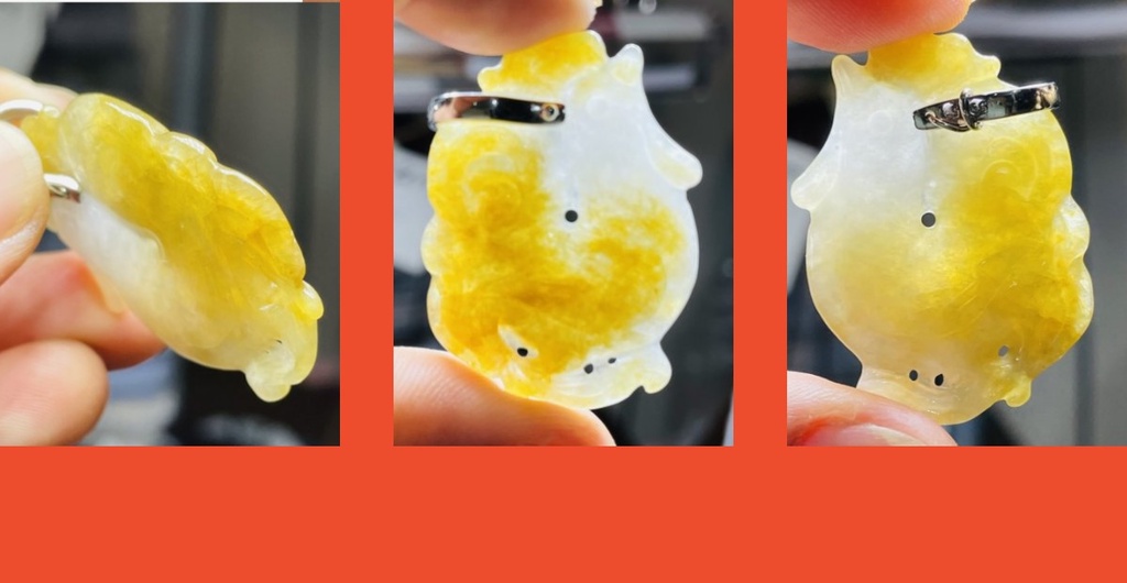 商品狀況:冰糯種 老坑黃雙彩 老坑黃翡冰料肉細緊緻細膩無晶體結構起冰
