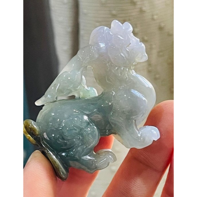 冰帶膠感春帶彩滿色 淡粉紫融合灰綠 起冰糖黃霧層俏雕尾巴 財在身後