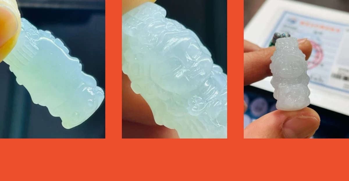 起冰淡綠底色近白 乾淨無晶體無雜點 獨家創意Q版雕工