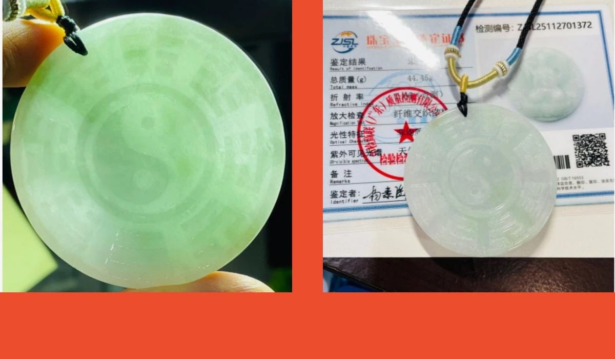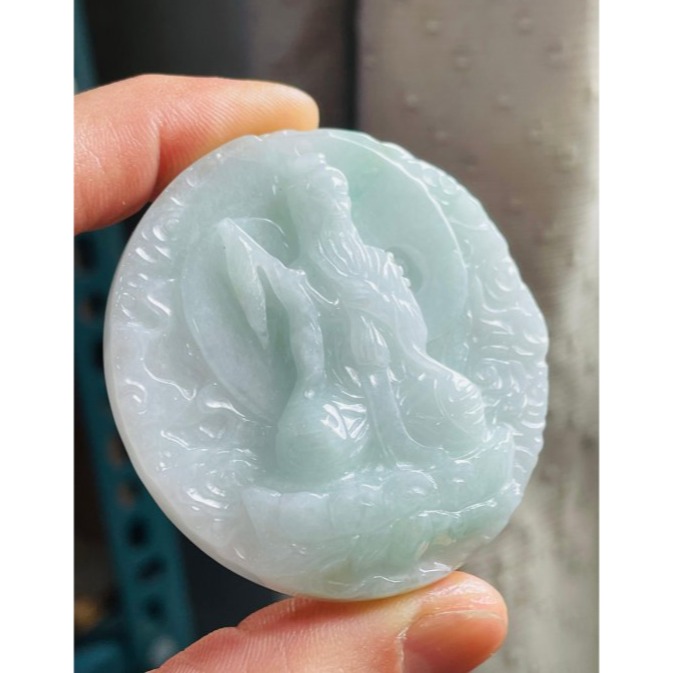 厚庄帶綠鐲心料一開雙面立體雕工牌形 背面為先天八卦