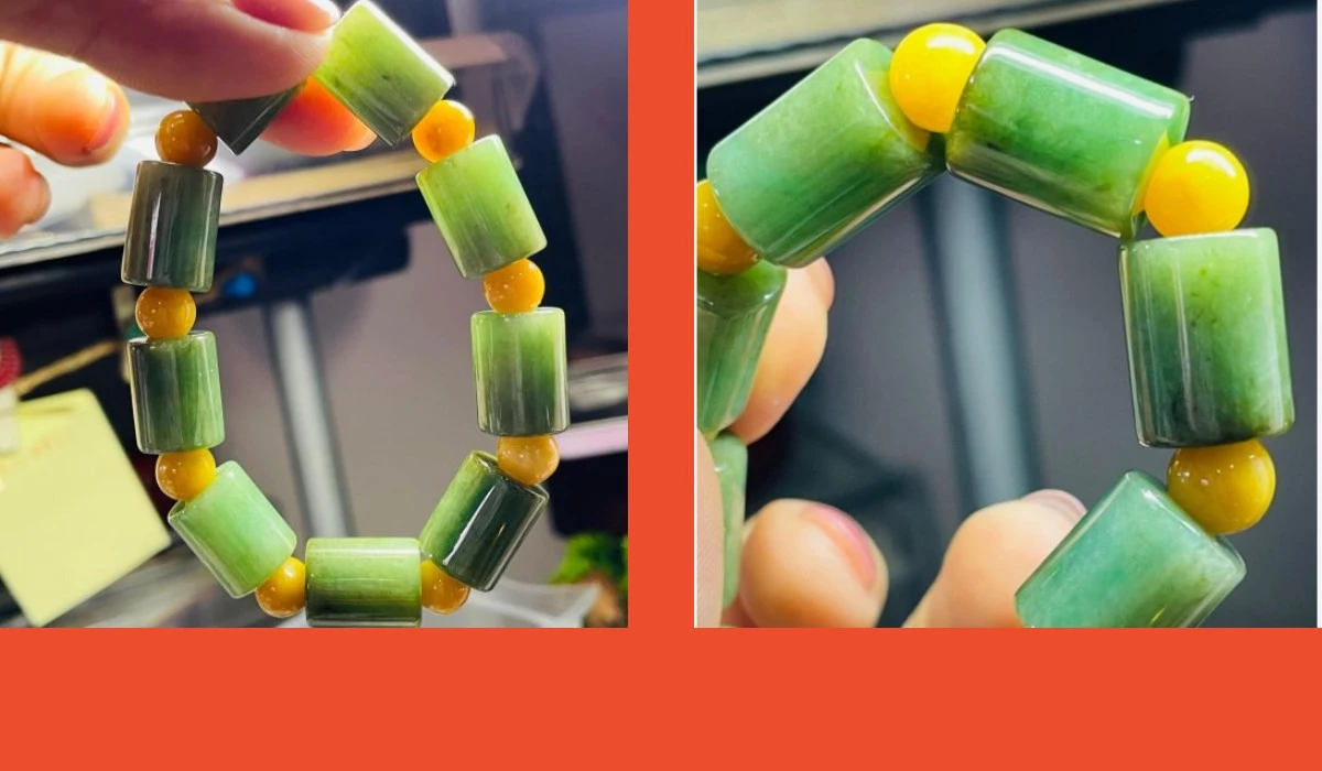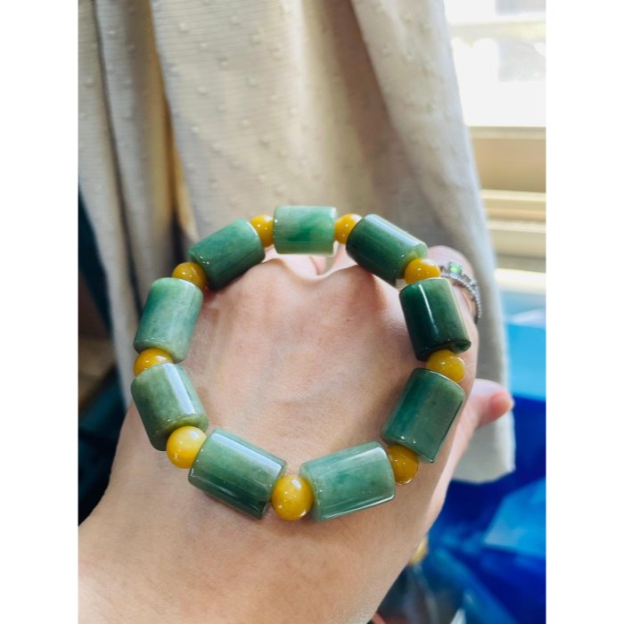 素面無雕 直徑11.1~11.5咪 長度不一約13~15.4咪 搭7.8咪黃翡格珠
