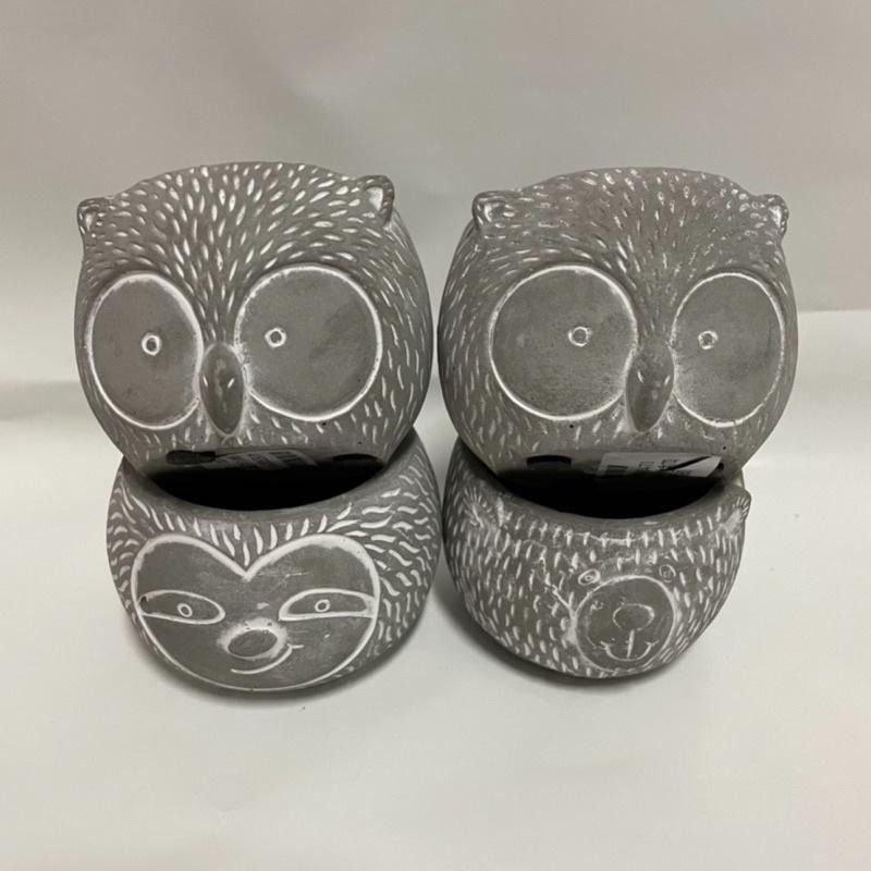 商品: 動物水泥盆 規格: 貓頭鷹直徑7.3*高6 熊直徑7cm*高6cm 樹懶直徑7.2cm*高6cm 底部都有排水孔