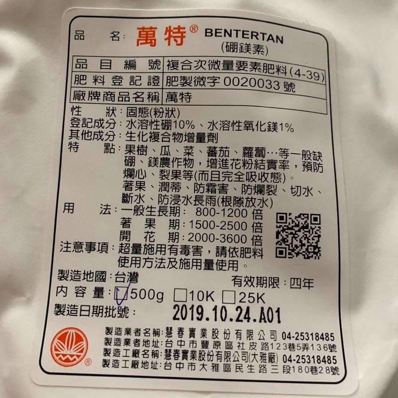 登記成分:水溶性硼10% 水溶性氧化鎂1% 其他成分:生化複合物增量劑