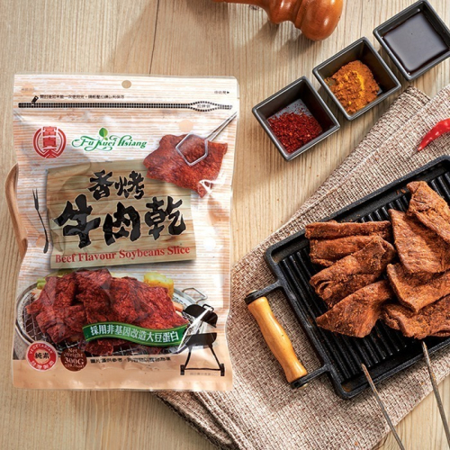 主要成分: 大豆纖維、糖、芥花油、醬油、鹽、黑胡椒粒、辣椒粉、薑母粉、麥芽糊精、酵母抽出物、 丁香、己二烯酸(防腐劑)、食用色素黃色5號