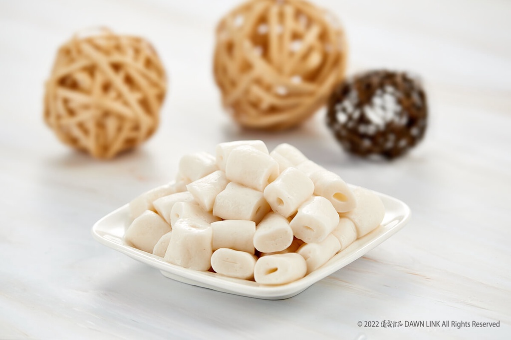 原料:水、磷酸二澱粉、蒟蒻粉、焦糖色素液、碳酸鈣、無水碳酸鈉、二氧化鈦、氫氧化鈣。