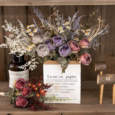 商品名稱:仿真花 微笑乾燒玫瑰花束 假花手捧花 玫瑰花牆 家居裝飾