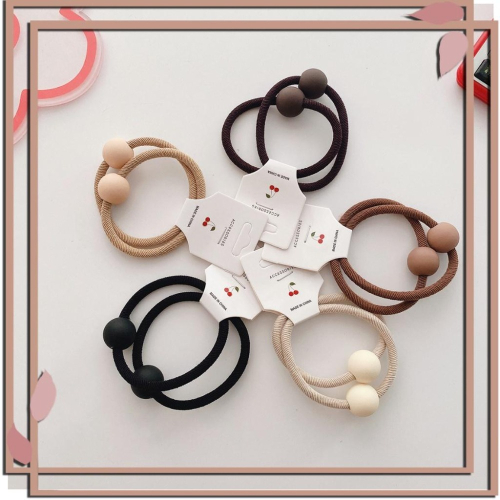 高彈力百搭基礎款馬尾法師發圈2入一對 /磨砂珠少女心丸子頭皮筋 韓風