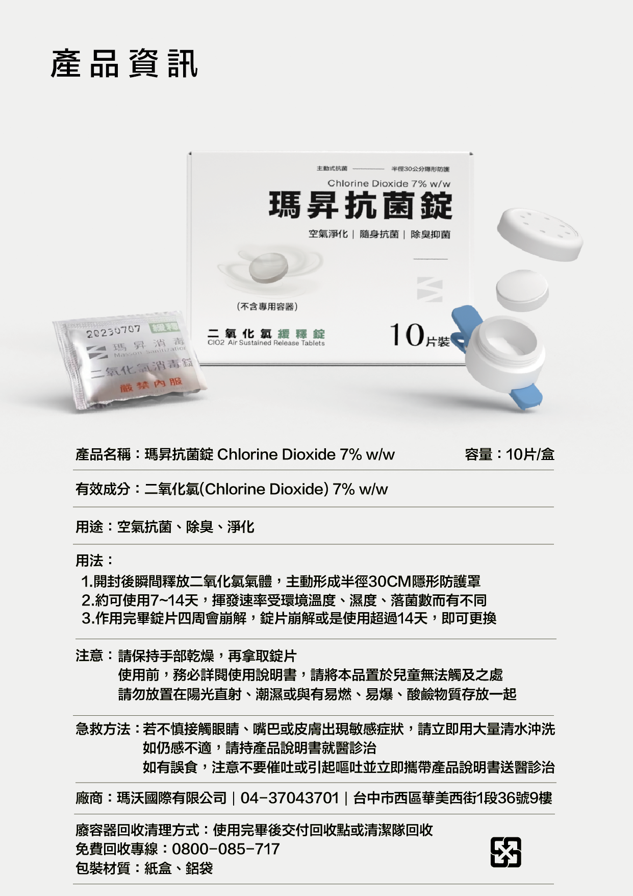 ▶︎產品名稱:瑪昇抗菌錠 Chlorine Dioxide 7% w/w