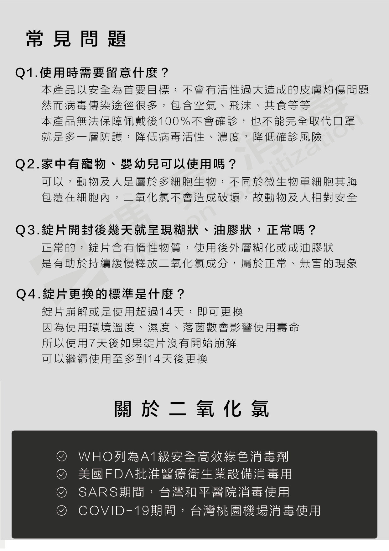 2.約可使用7-14天,揮發速率受環境溫度、濕度、落菌數而有不同。