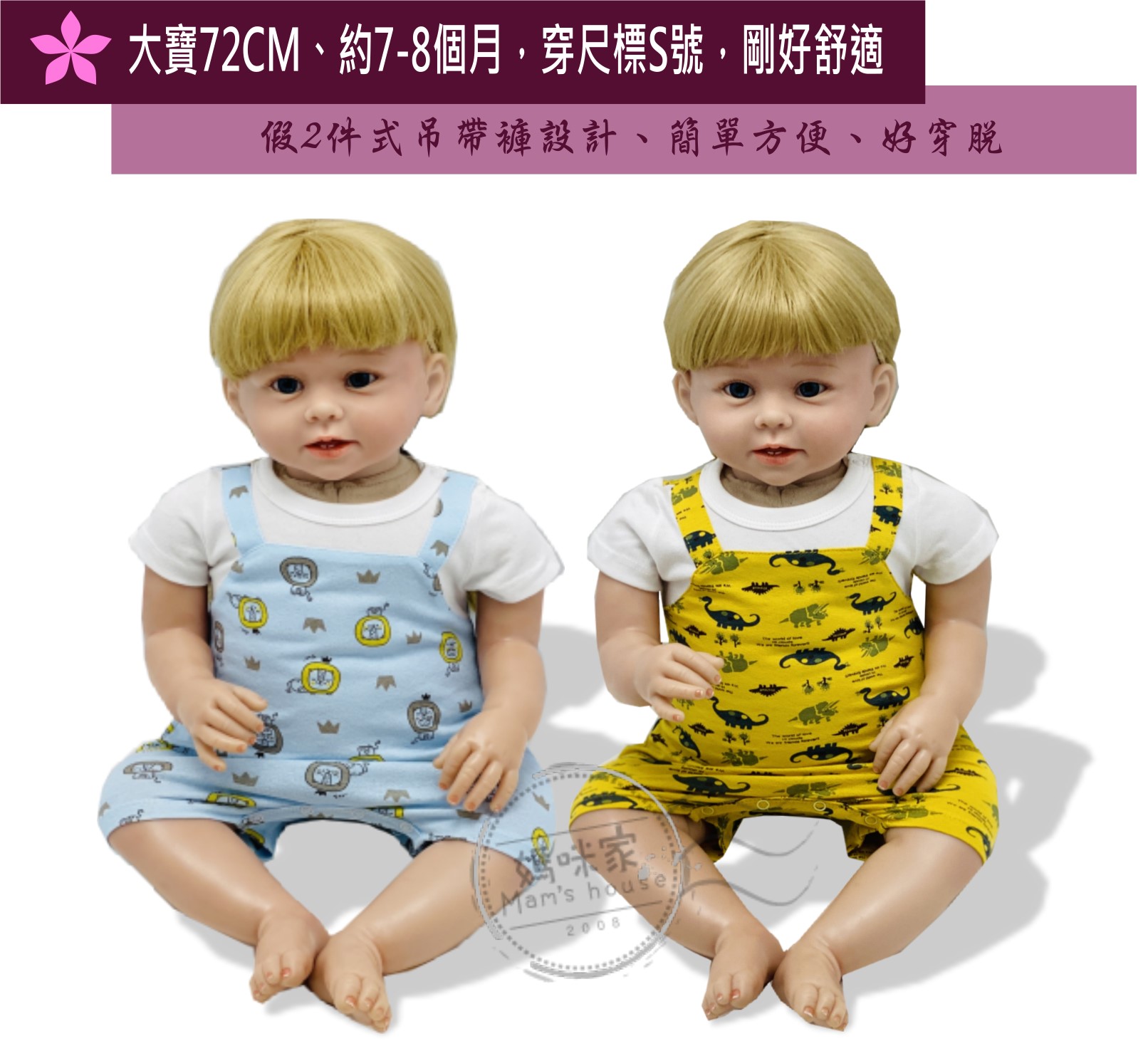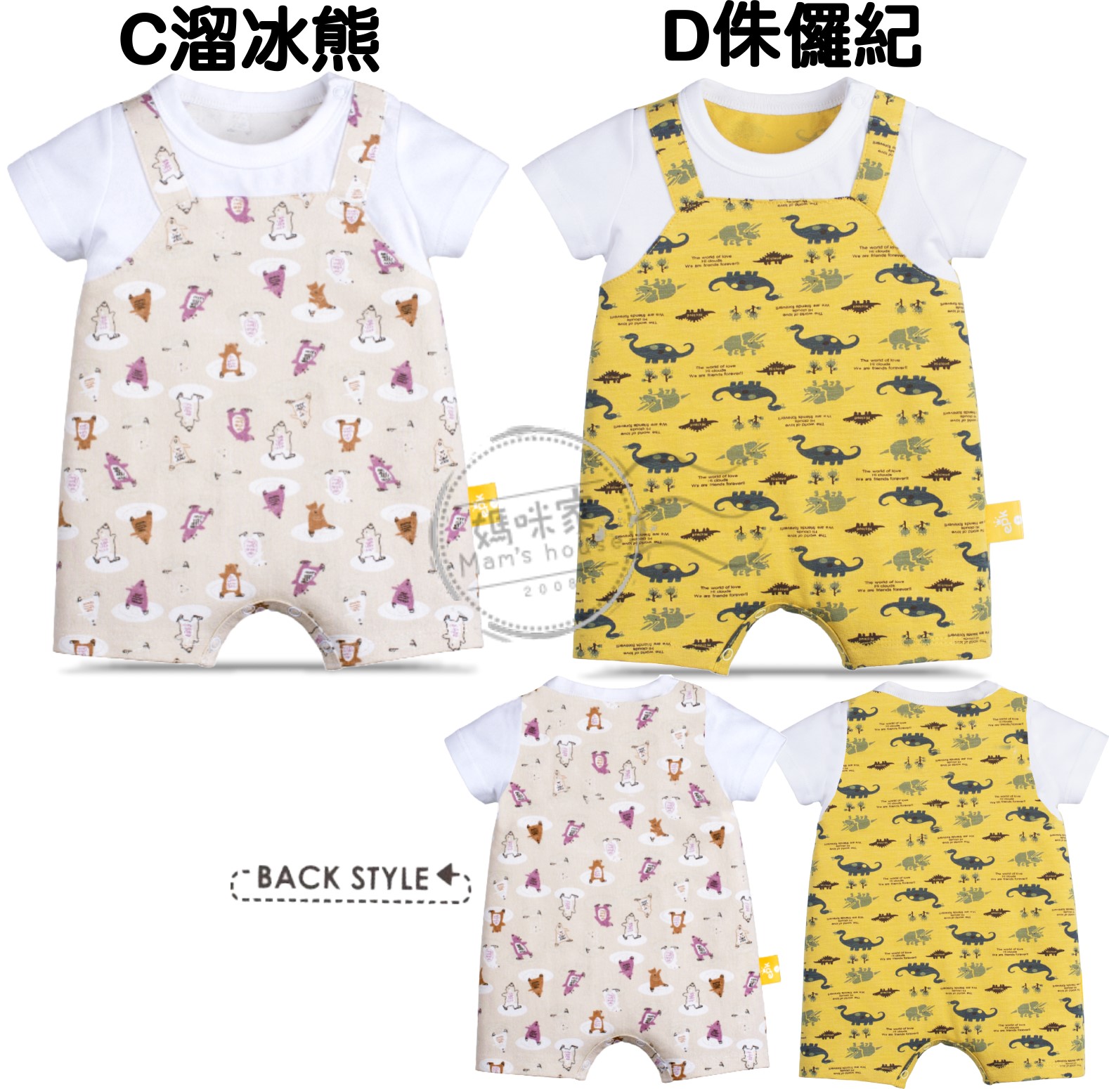嬰幼童 肩釦 假兩件 短袖 弔帶褲 包屁 連身衣 哈衣 棉麻 軟綿 epk 媽咪家 S~XXL