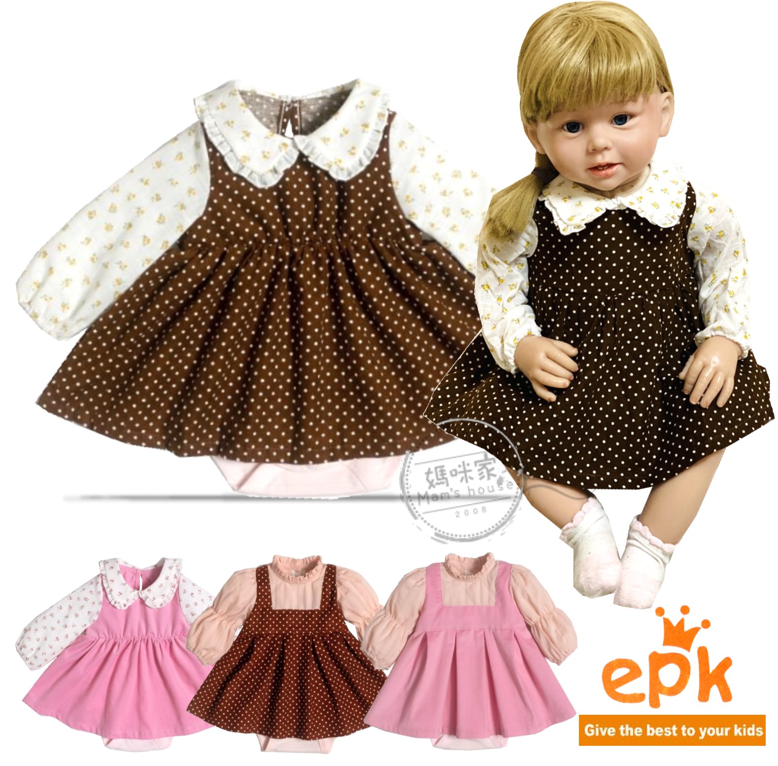 epk 女童 中厚綿 燈心絨 軟綿 假2件 包屁 哈裙 連身裙 洋裝 公主領 S~XXL號