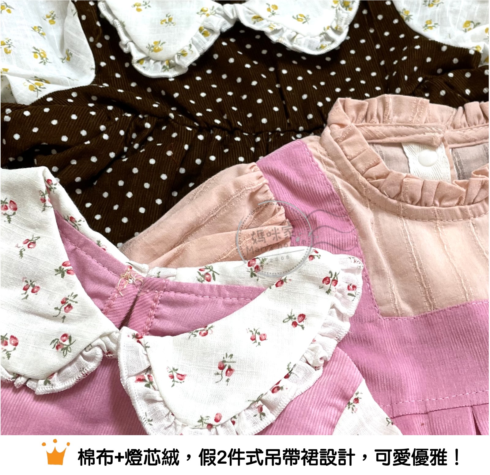 ◆棉布+燈心絨假兩件式設計,可愛典雅大方。
