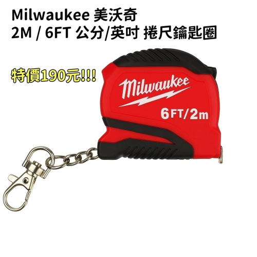 Milwaukee 美沃奇 捲尺鑰匙圈 2M/6FT 公分/英吋 裸裝 五金 捲尺 測量工具