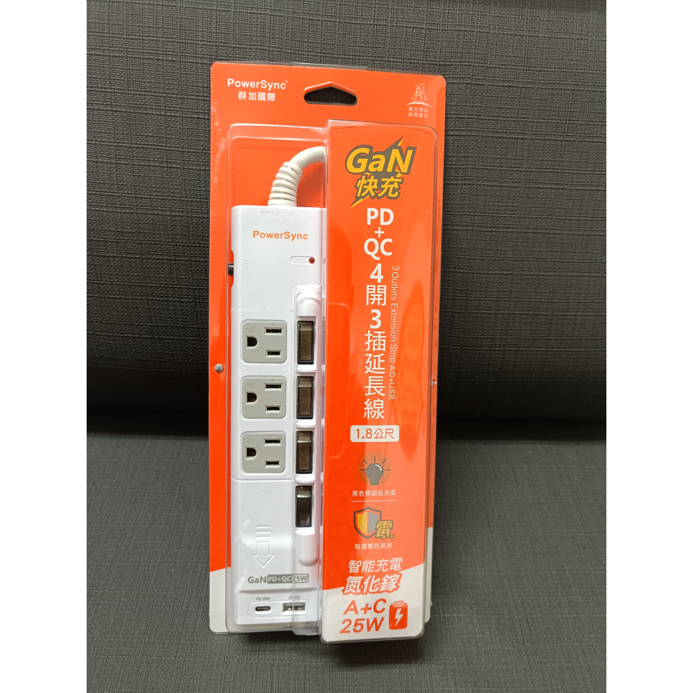 PowerSync 群加 4開3插 GaN 快充 防雷擊 延長線 白色 1.8m (TS43Q018)