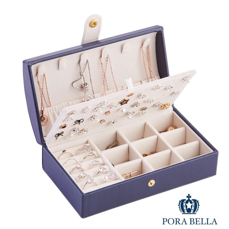 <Porabella>貴婦皮革首飾盒 圓弧形 珠寶盒 旅行旅遊 絨布盒飾品盒 戒指項鍊耳環耳夾收納 展示架展示收納盒