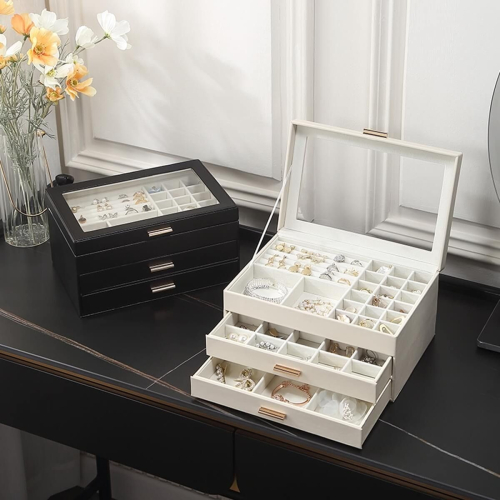 比起不經意的驚奇感 有時候更喜歡一目了然 大容量皮革首飾盒 搭配如同展示櫃般的透明上蓋 井然有序地展示著心愛的飾品們 將所有令人怦然心動的配件一一擺入 透過展示窗台 打造最閃耀美麗的作品集 配有兩層抽屜式收納 超大容量完美收藏 大容量實現飾品自由 多種顏色多種風格選擇 買起來繼續買買買 【產品規格】 ➤實際尺寸:長26.5公分 x 寬18公分 x 高13.5公分 ➤產品材質:合成皮革+內部鋪絨 ➤產品內容:飾品盒x1個