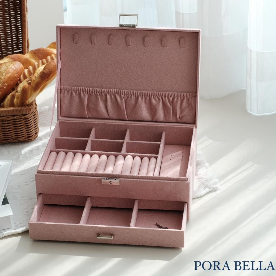 <Porabella>新款雙層絨布抽屜式首飾盒 可上鎖飾品收納盒 戒指項鍊耳環耳夾收納展示收納盒 多色可選
