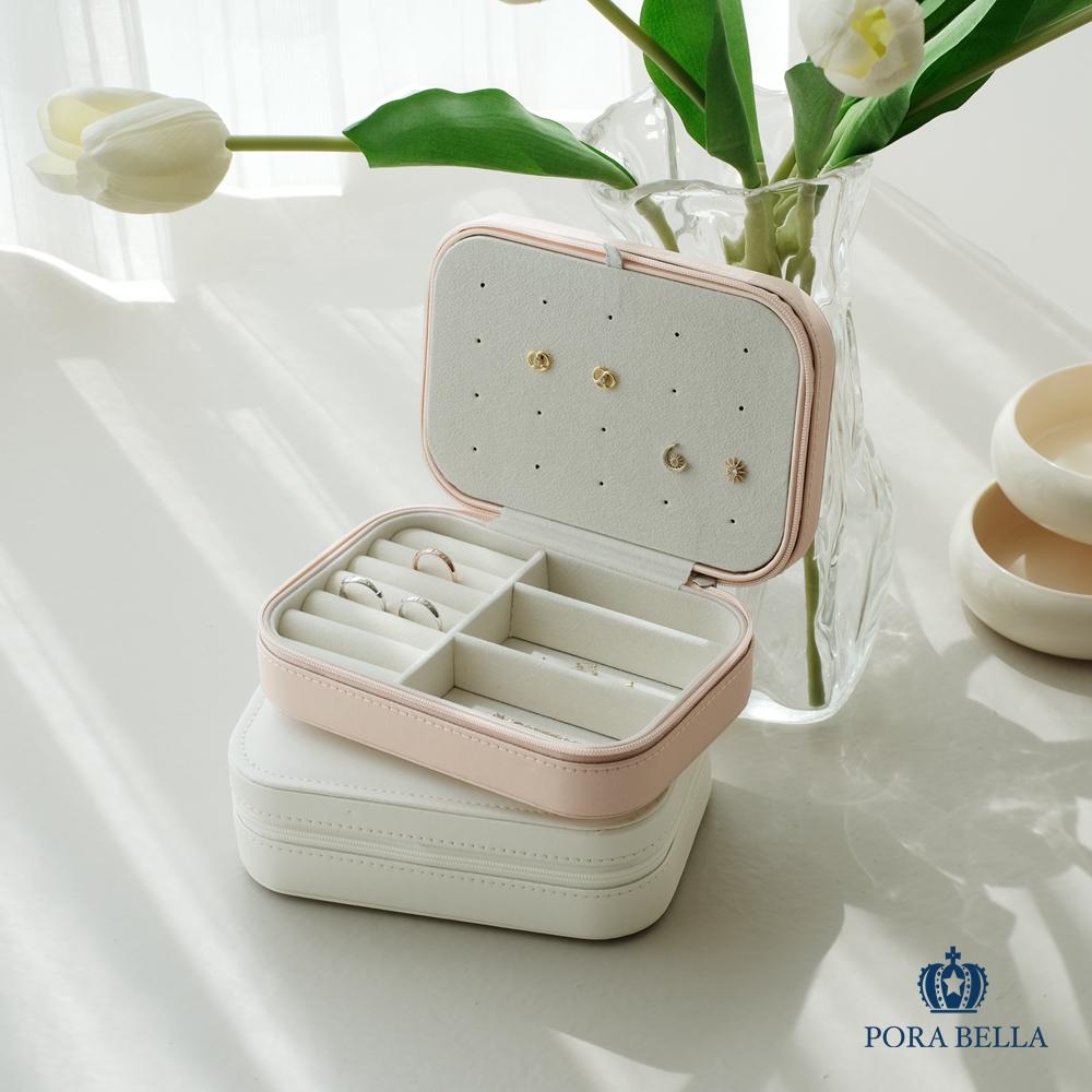 <Porabella>新款拉鍊式皮革首飾盒 耳釘飾品盒 旅行旅遊飾品戒指項鍊耳環耳夾收納 飾品收納盒 粉色白色飾品盒