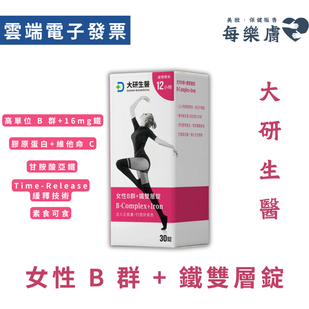 【女性 B 群 + 鐵雙層錠】專為女性打造,B 群+鐵補足關鍵營養,膠原蛋白+維他命 C 美研加分,12 小時長效補給,讓你每天都能展現最好的自己。