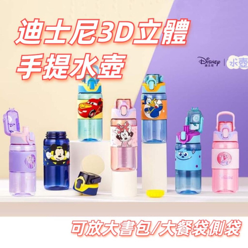 【台灣現貨】迪士尼 費雪 手提 提把彈蓋直飲/吸管水壺 運動水壺 上學水壺 540ml