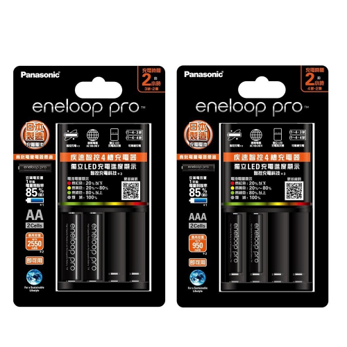 2顆eneloop中階3號電池,僅需2小時即可充飽