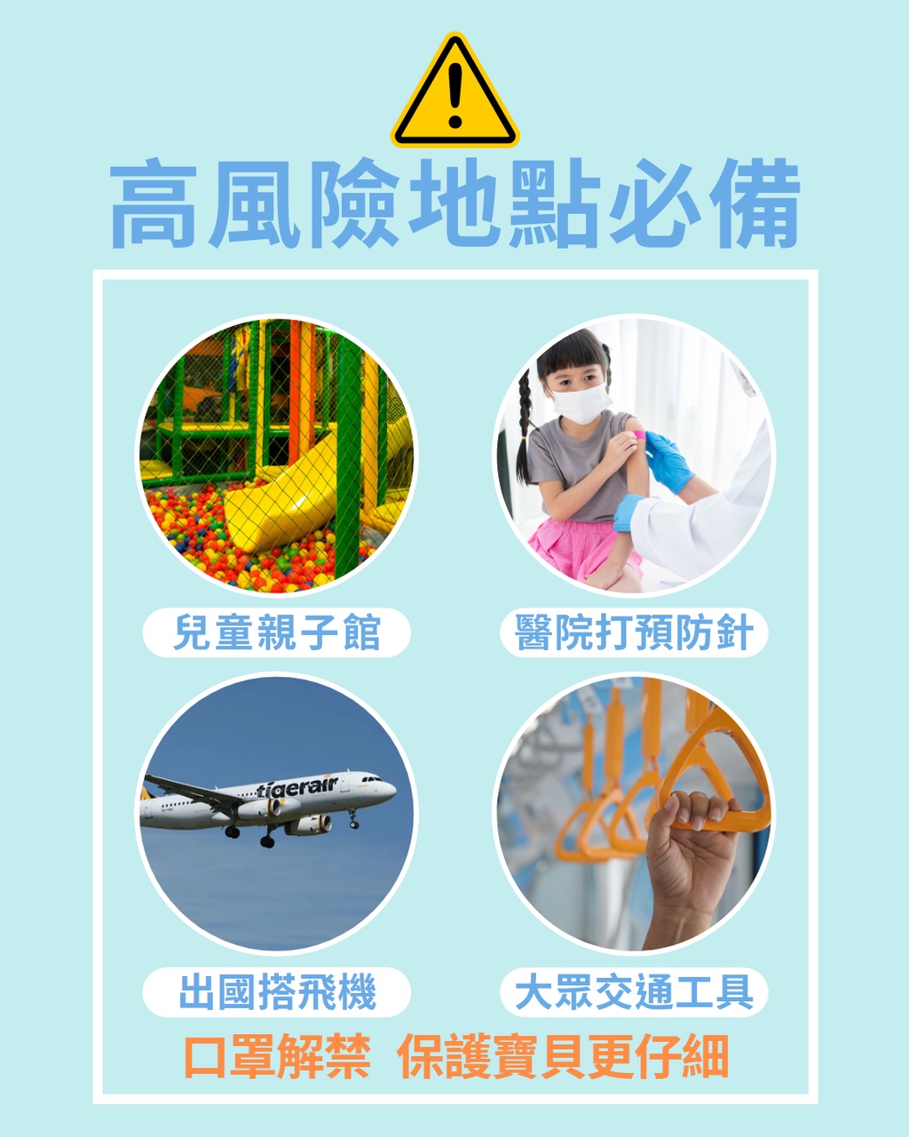 出國旅遊坐飛機、遊戲親子館、醫院回診、打預防針、百貨大賣場逛街、搭乘大眾交通工具,雙層保護好安心