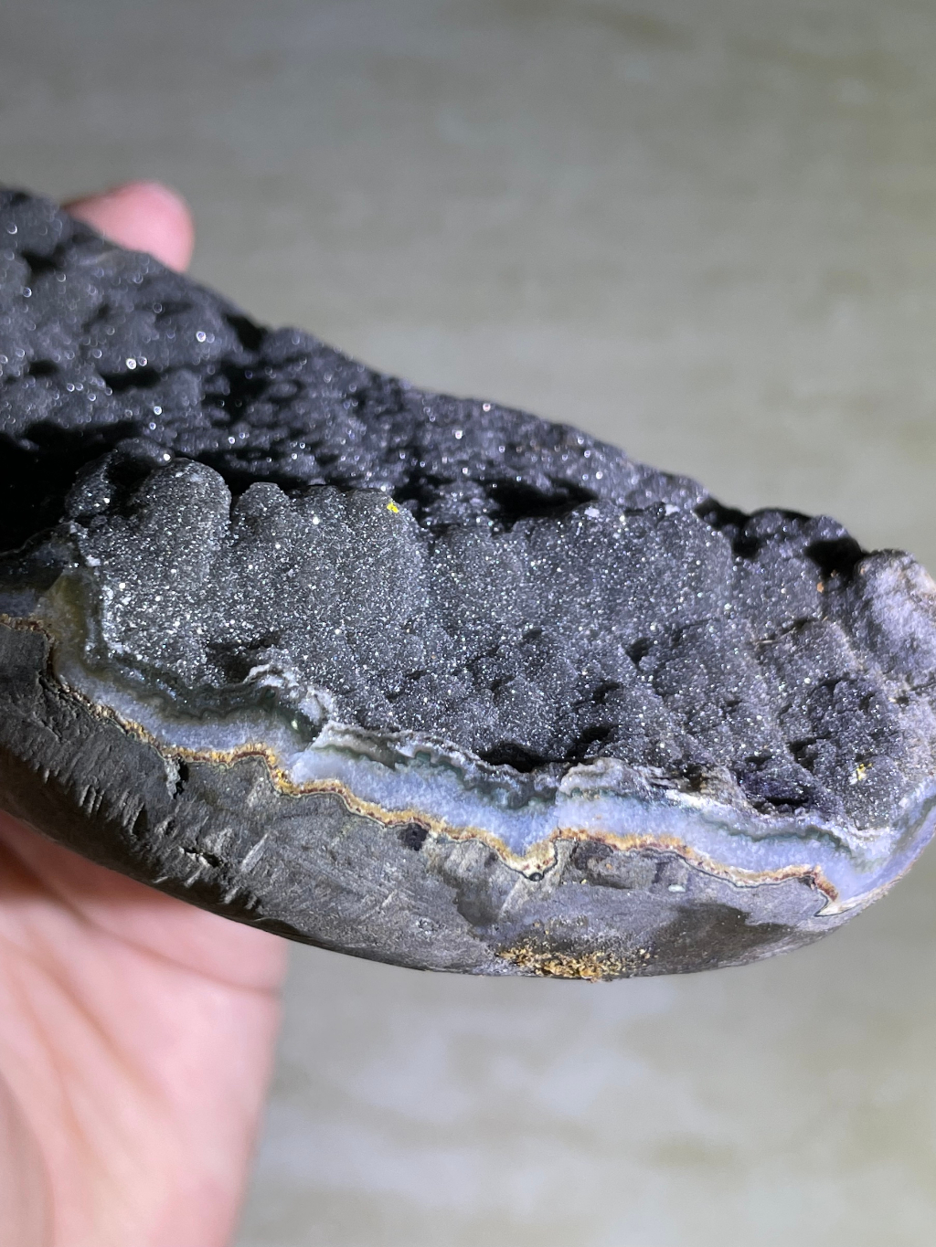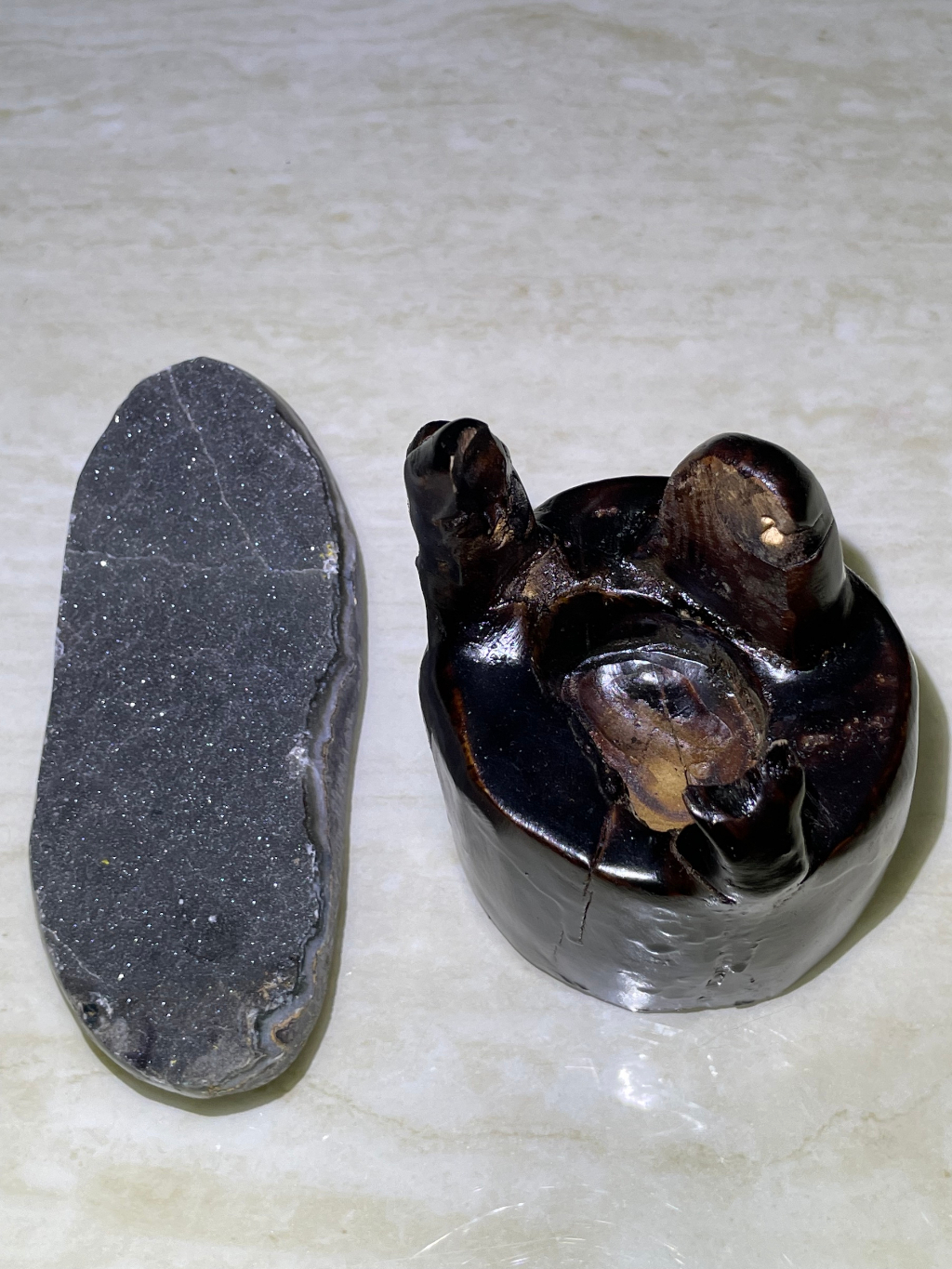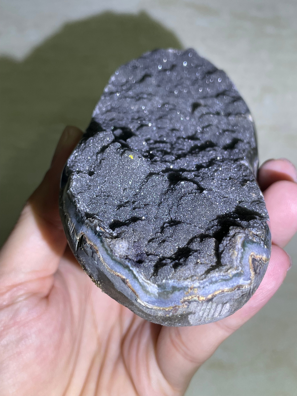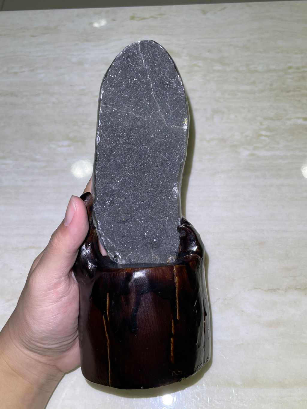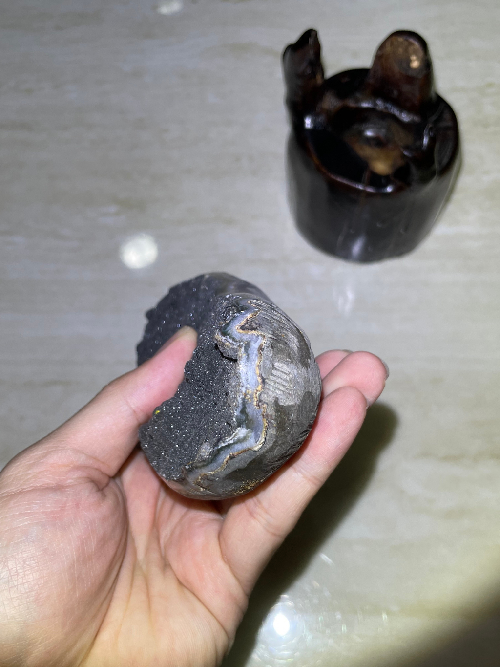 🇺🇾烏拉圭大晶鎮 - 船型完整雙色瑪瑙邊 糖霜閃晶體 異像晶鎮 附高底座 贈五帝錢葫蘆吊飾
