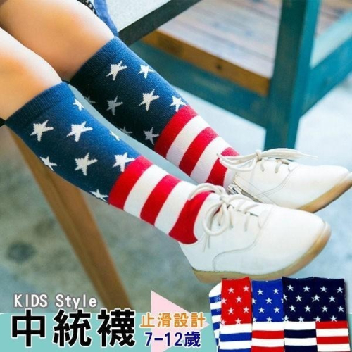 童襪_美式國旗-造型純棉止滑中統童襪-(2雙入)_采靚鞋包精品_ MIT 台灣製_3408-7L