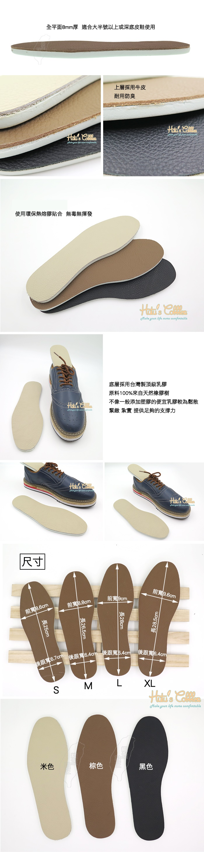 牛皮鞋墊_C46 台灣製造 8mm平面牛皮乳膠鞋墊 大半號 深底皮鞋使用【采靚鞋包精品】