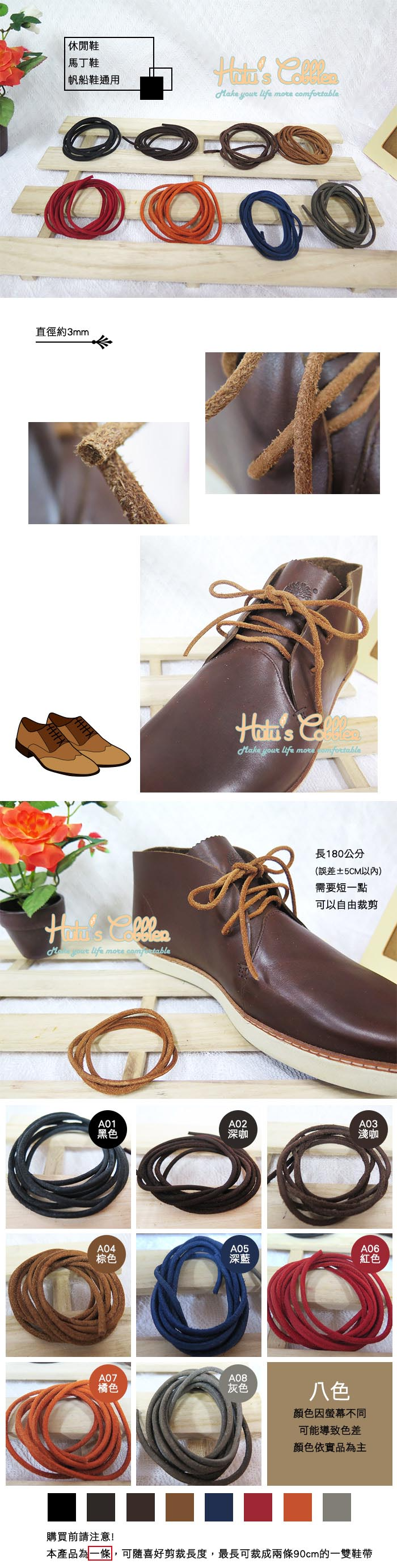 180cm圓型牛皮鞋帶