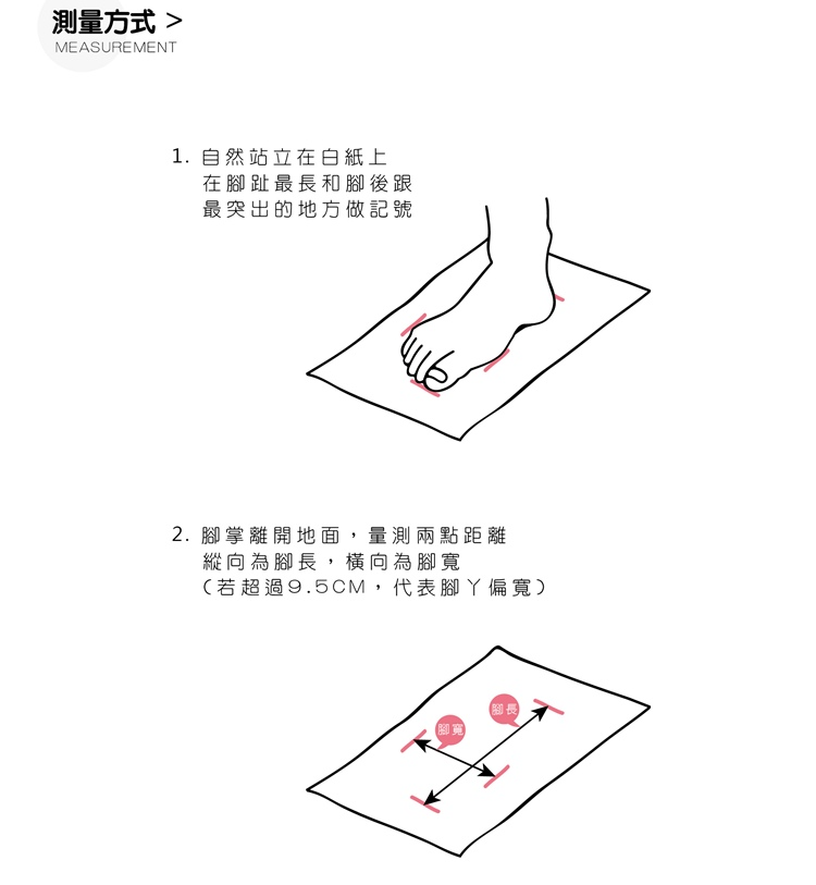 我們的正常版型鞋款:建議您先測量實際腳長再選購會較準確,