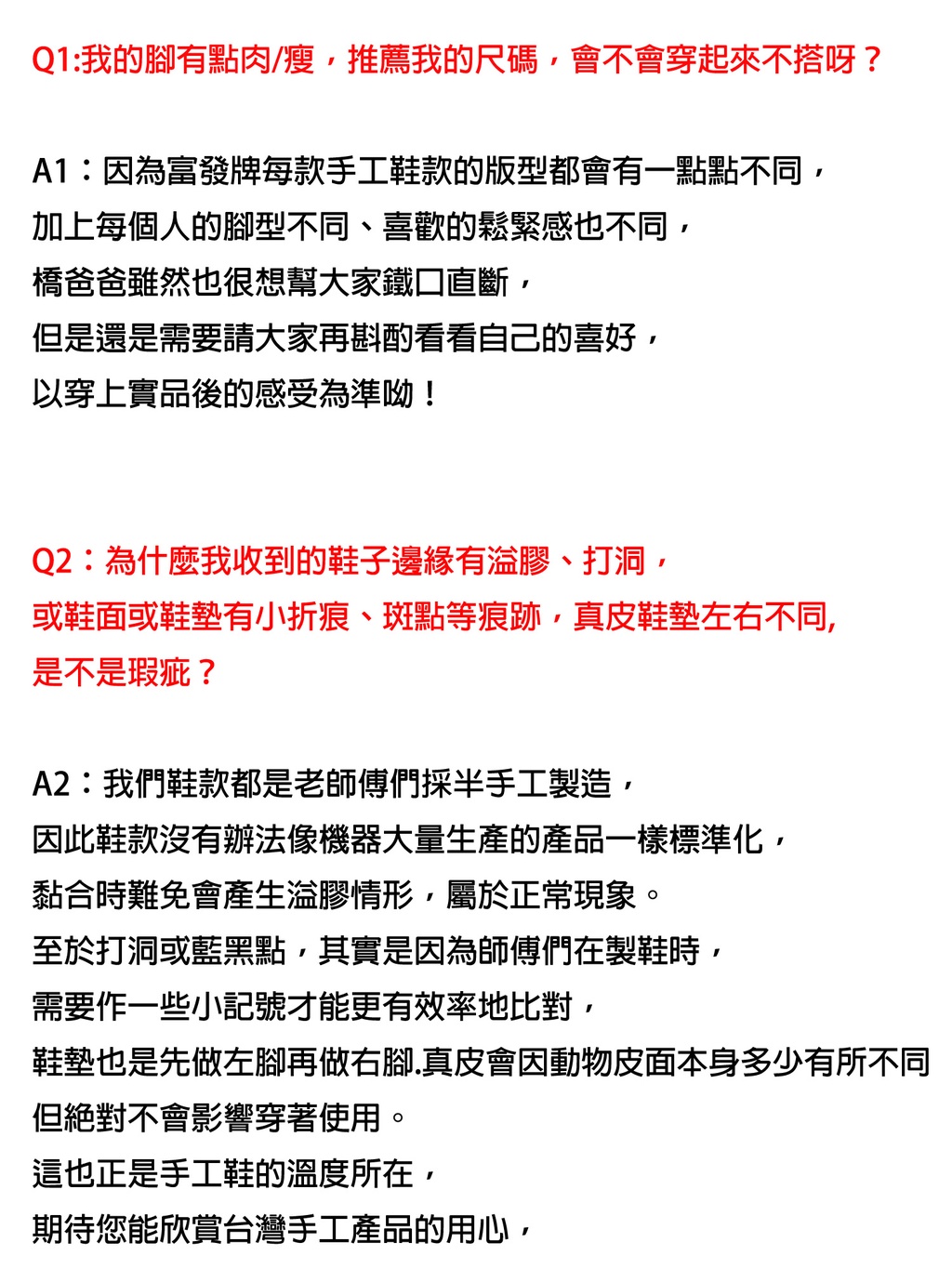 6.鞋子有些是手工縫製,有些是機器生產,生產過程難免有些微的細小瑕疵,「完美主義者請勿下標」。
