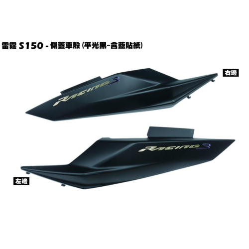 雷霆S 150-側蓋車殼(平光黑-藍貼紙)【★可超商、SR30JE、SR30JD、SR30JC、光陽內裝車殼】