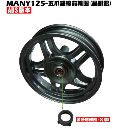 MANY 125-ABS五爪雙線前輪圈(晶鑽銀)【正原廠零件、SE24BC、SE24BJ、SE24BF、光陽、輪框】