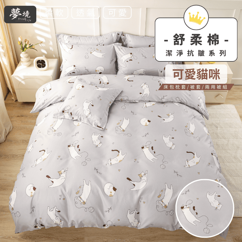 【夢境】MIT 舒柔棉床包組 床包枕套 被套 鋪棉兩用被組 - 可愛貓咪